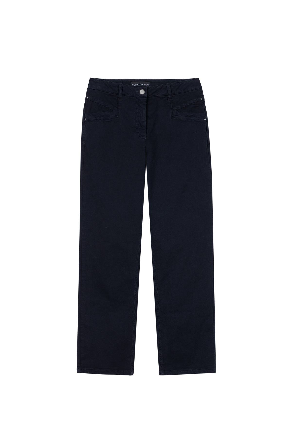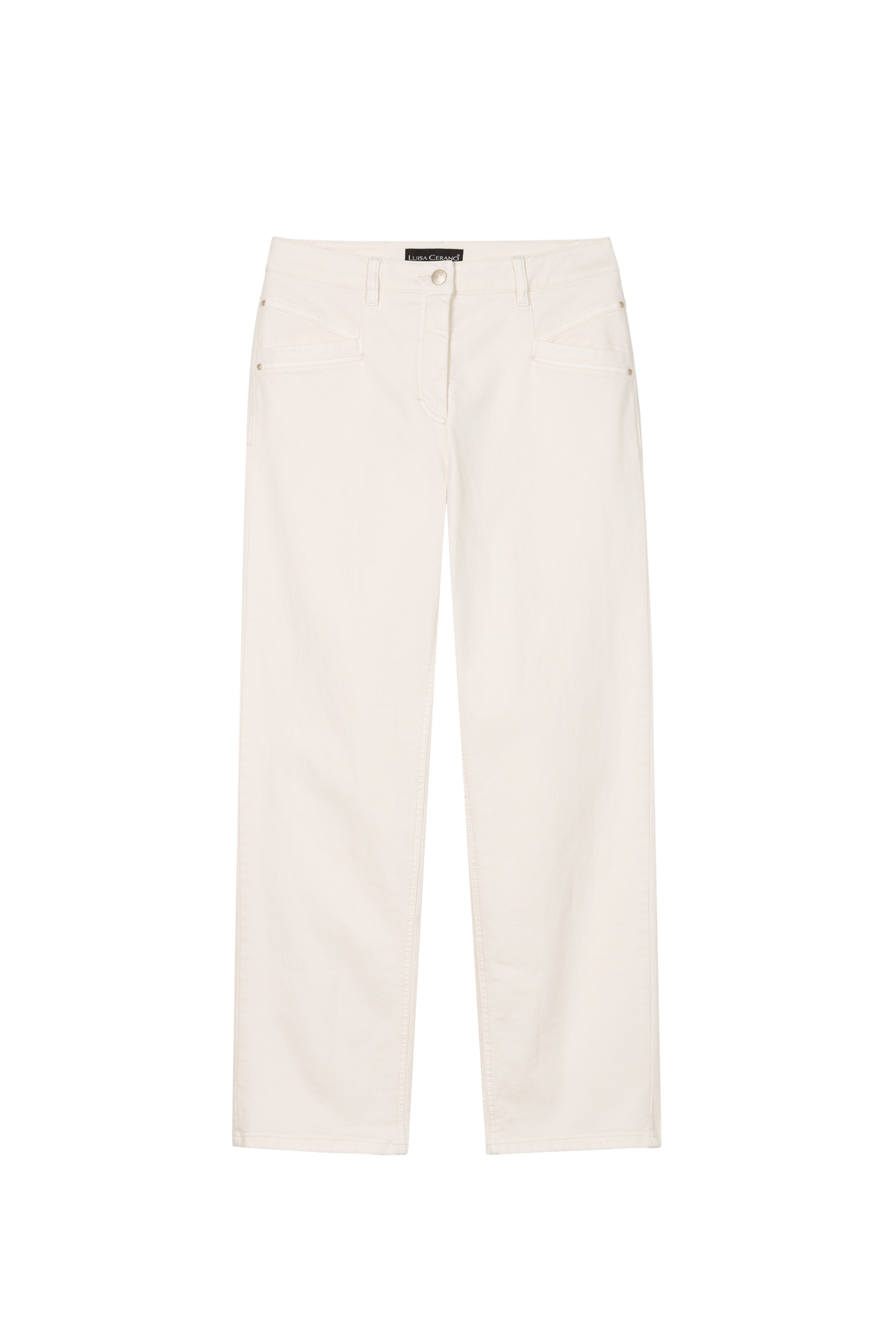 Tailored with a refined yet casual ease, these straight-leg jeans feature angled front pockets that subtly elevate their silhouette. The clean, minimalist design makes them endlessly versatile for both day and evening looks. A timeless wardrobe staple with a crisp finish.