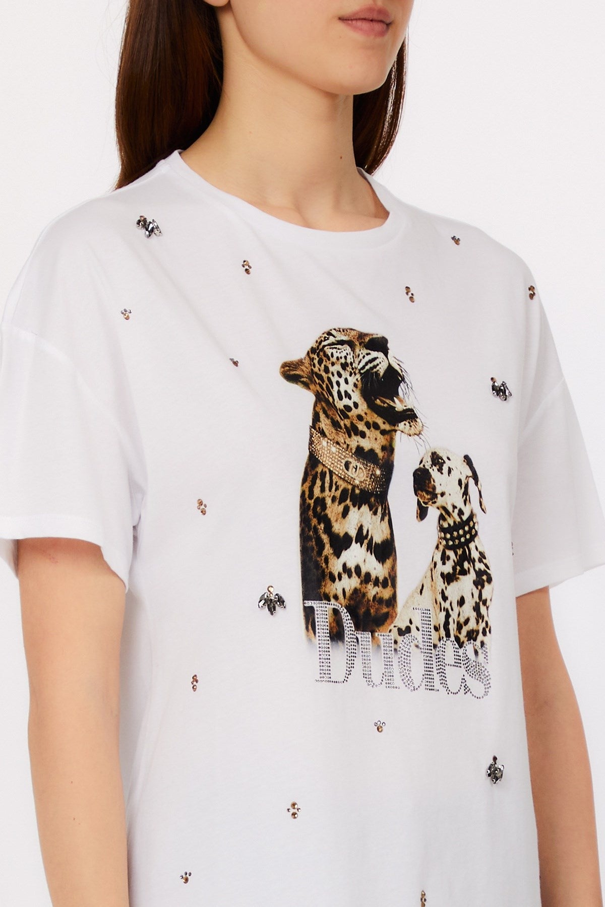 Bold and playful, this graphic tee features a striking animal duo print embellished with sparkling details and whimsical motifs. The relaxed fit and classic crew neckline keep it effortlessly cool. It's the perfect statement piece to inject fun into your everyday wardrobe.