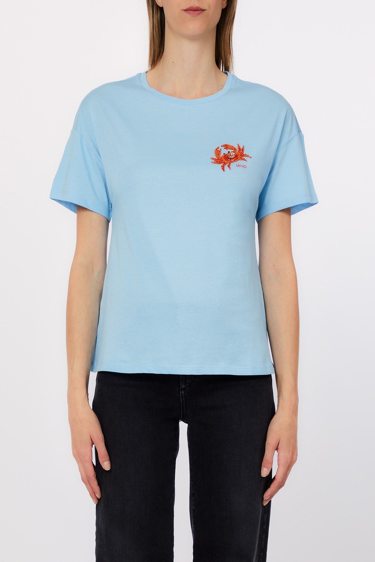 Casual with a playful twist, this relaxed-fit tee features a beaded crab motif that brings a splash of seaside charm. The clean silhouette and soft fabric make it an easy everyday piece with a touch of whimsy. Perfect for off-duty styling or beachside strolls.