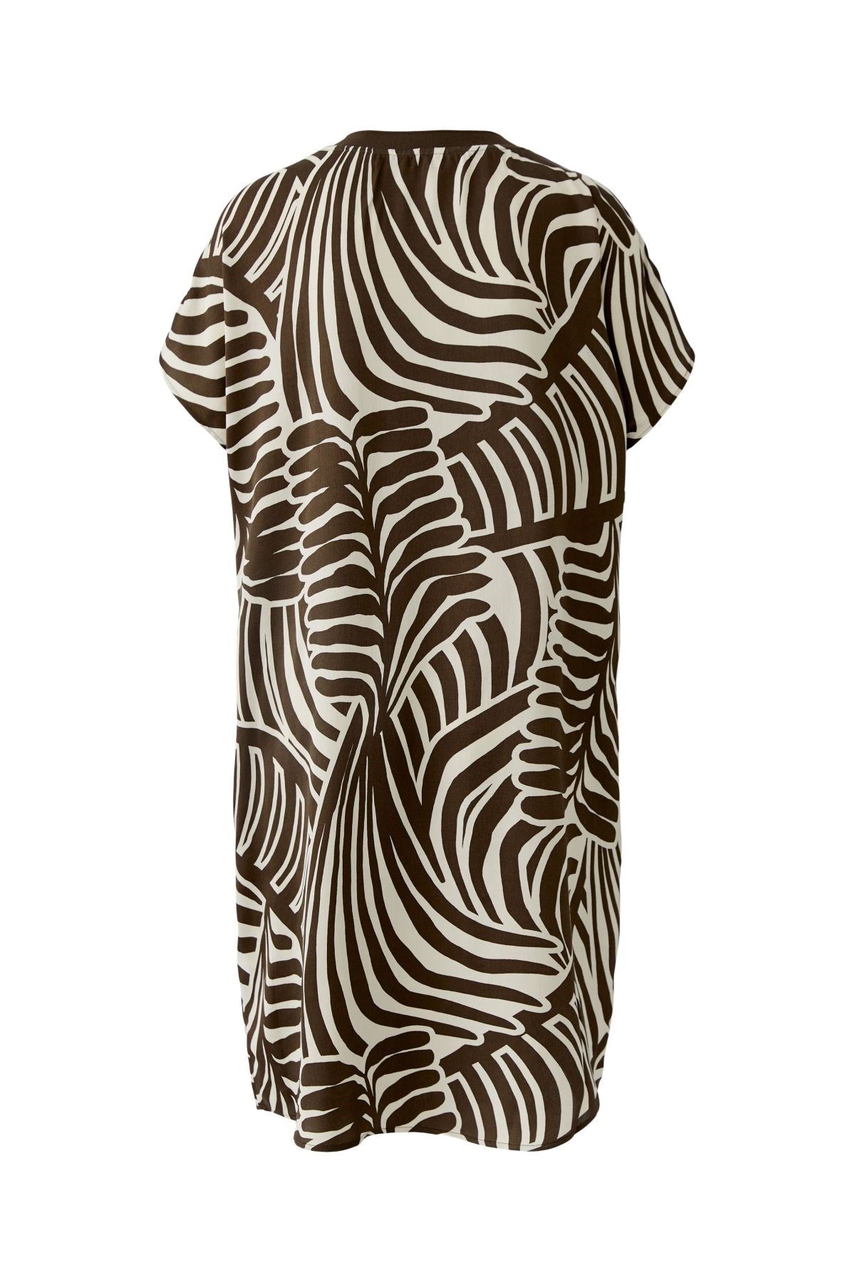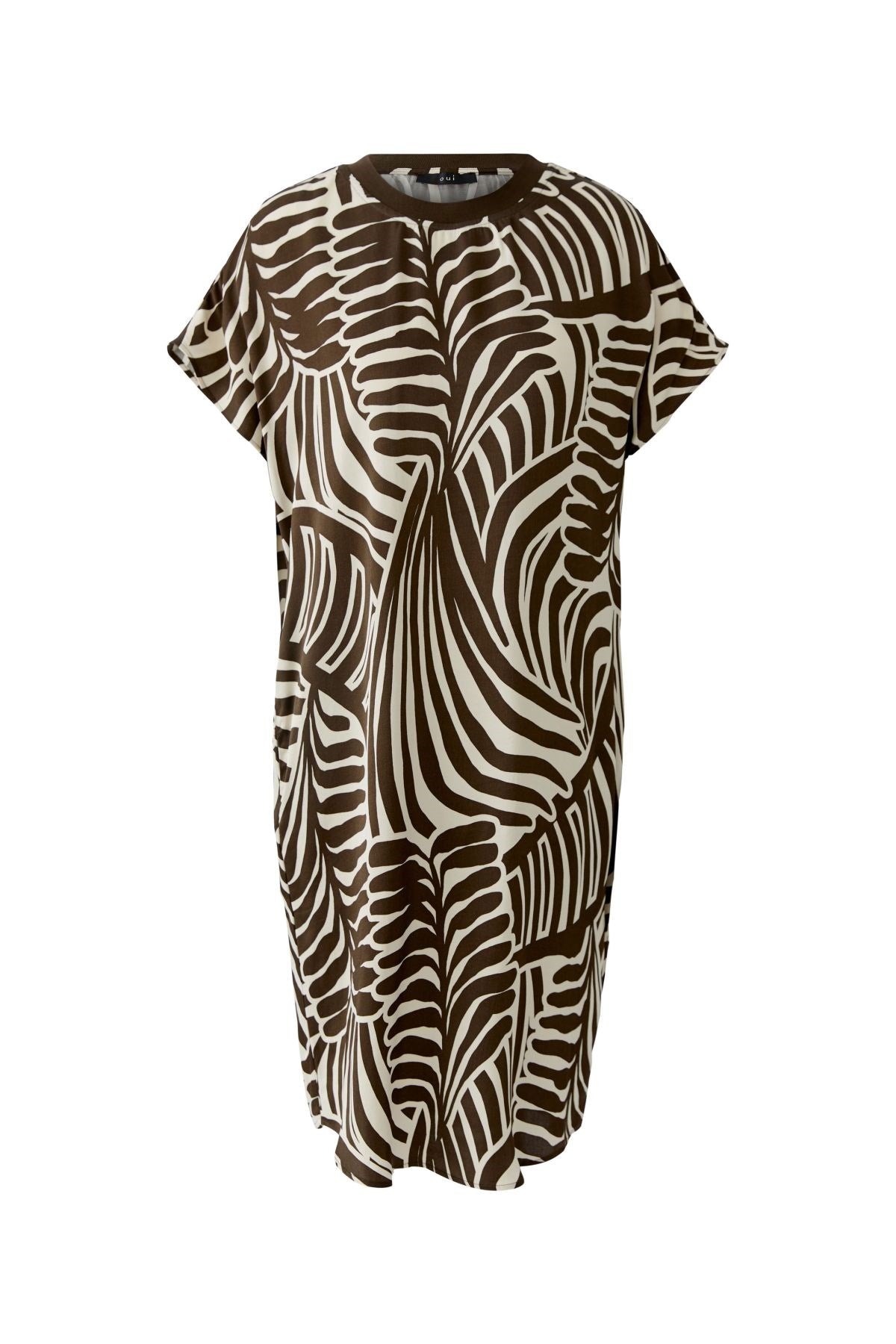 Striking and effortless, this t-shirt dress makes a bold statement with its abstract leaf-inspired print and fluid silhouette. The relaxed cut and cap sleeves lend it an easy, throw-on appeal perfect for sunny days or city strolls. A one-piece wonder that balances comfort with standout style.