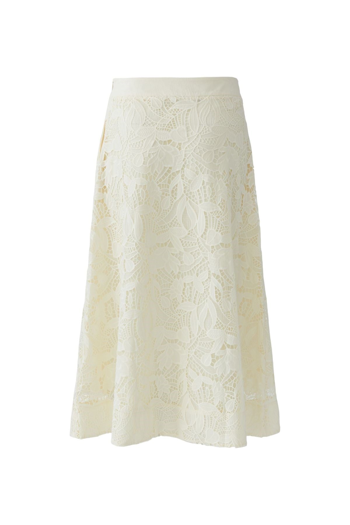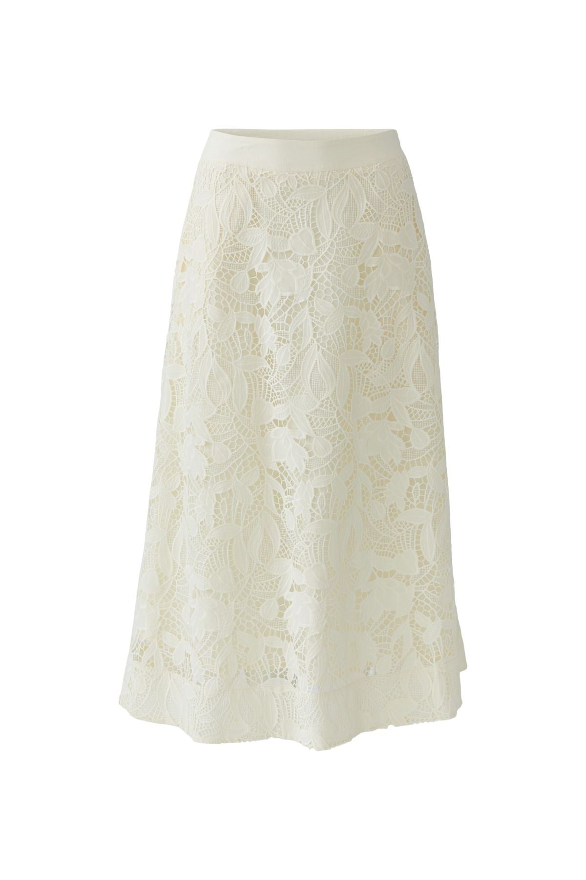 Romantic and refined, this midi skirt features intricate all-over lace in a floral design that feels both timeless and modern. The soft A-line shape moves gracefully, while the elastic waistband ensures all-day comfort. A true statement piece that adds elegance to any ensemble.