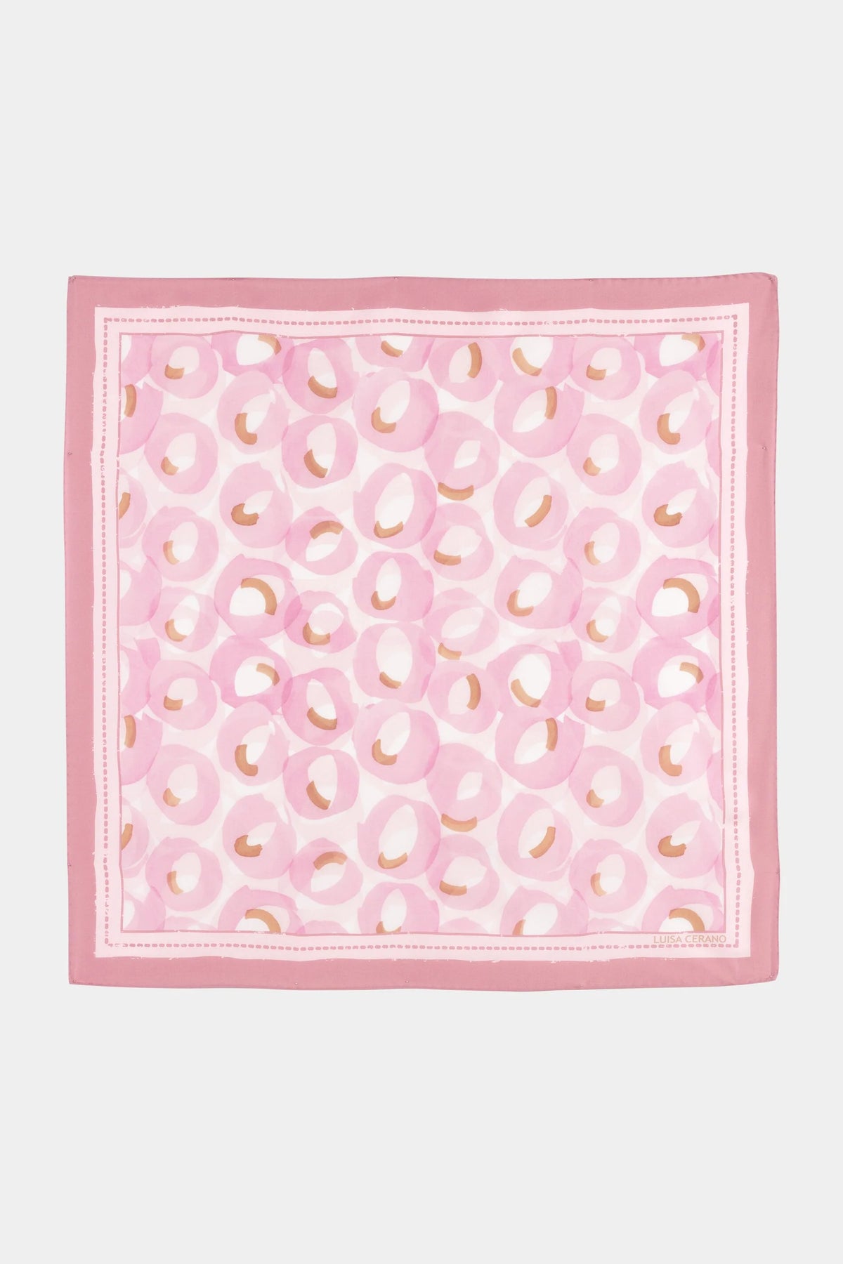 Sweet and spirited, this playful scarf is adorned with a bold circular print that brings instant charm. The soft triangular shape makes it endlessly versatile—tie it around your neck, wrist, or bag for a pop of personality. A flirty finishing touch to elevate any look with retro flair.