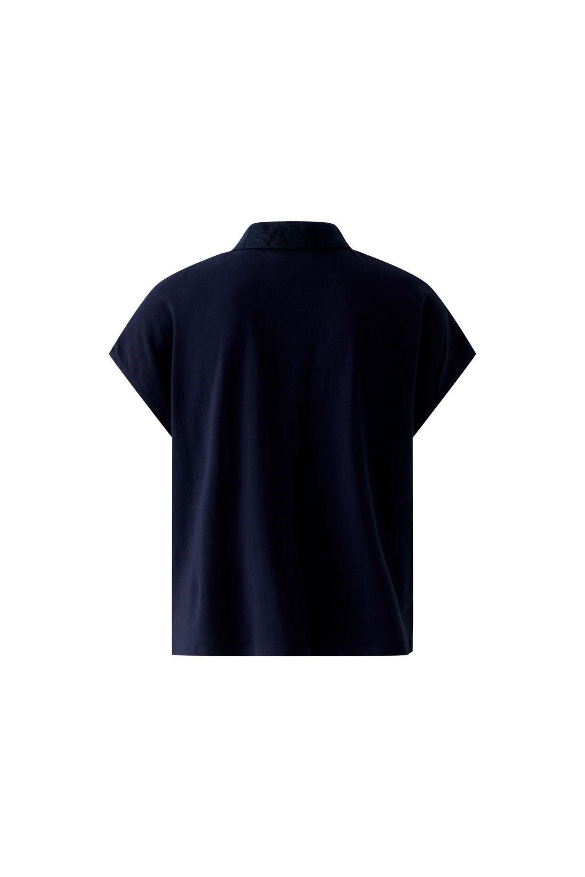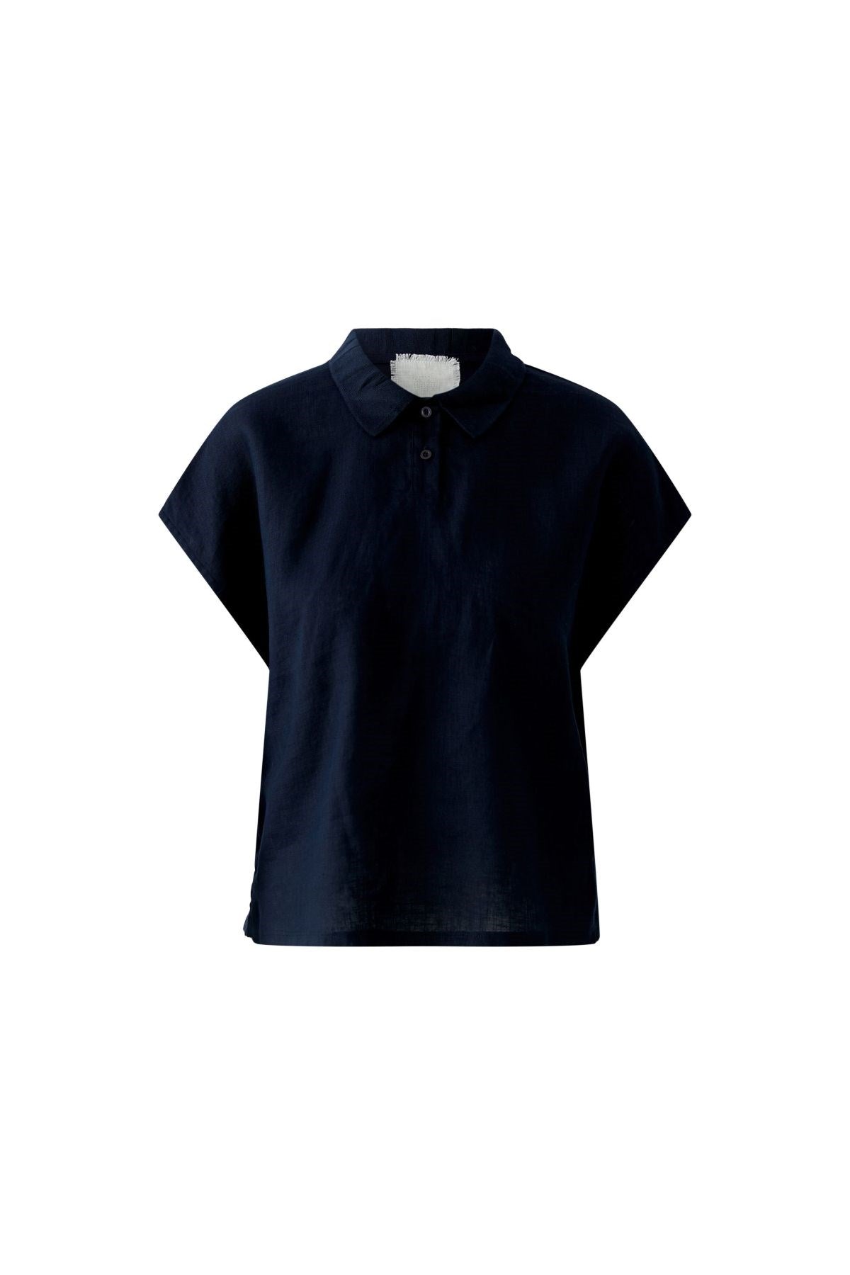Clean, crisp, and effortlessly refined, this cap-sleeve top features a structured collar and minimalist silhouette. Crafted in breathable fabric, it merges classic tailoring with relaxed ease. A versatile essential for warm-weather polish.