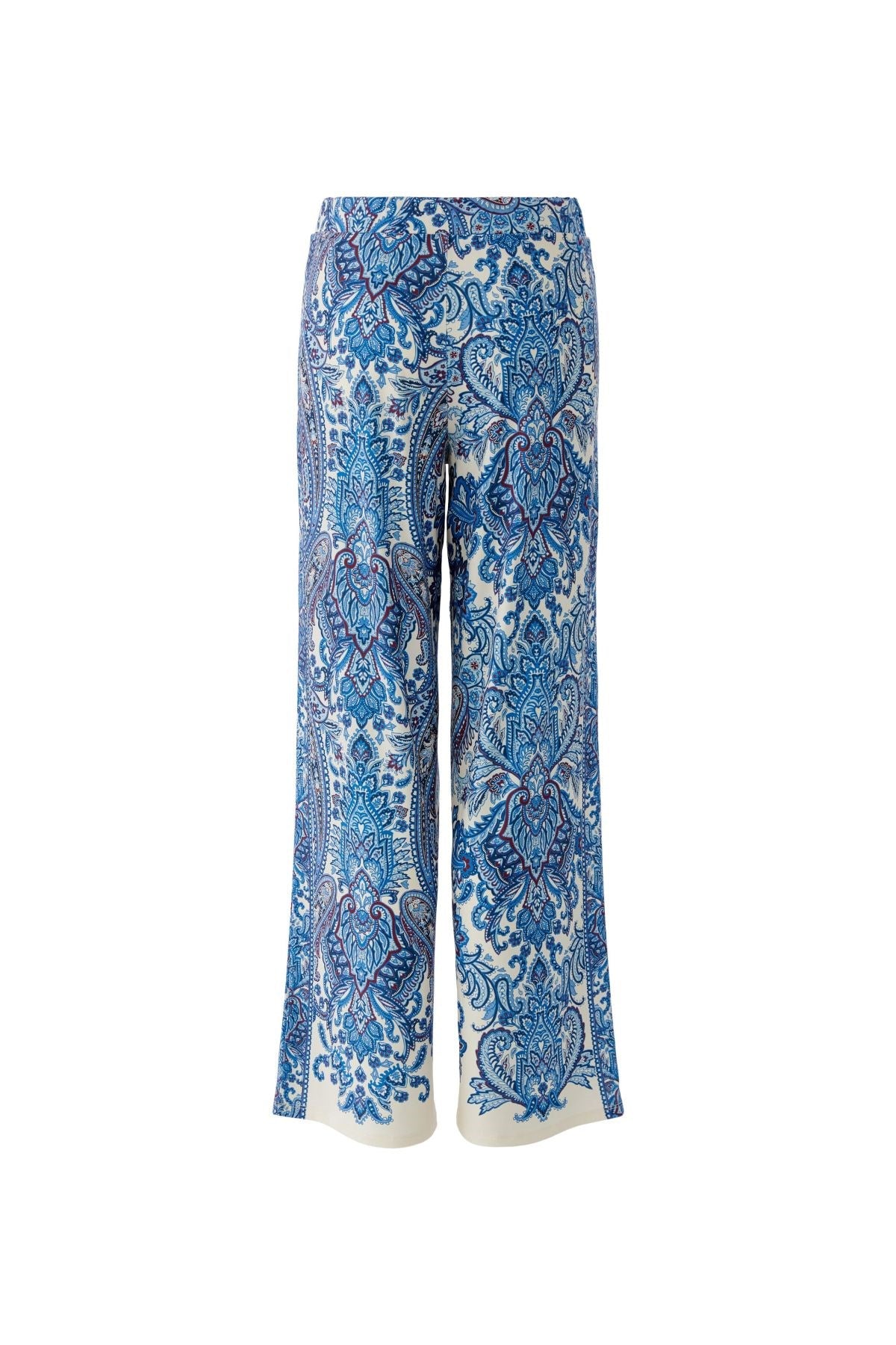 Striking and fluid, these wide-leg trousers feature an ornate paisley print that brings a touch of bohemian glamour to any ensemble. The lightweight fabric moves effortlessly, making them ideal for warm days or vacation-ready looks. Pair with a simple top for a bold yet balanced statement.