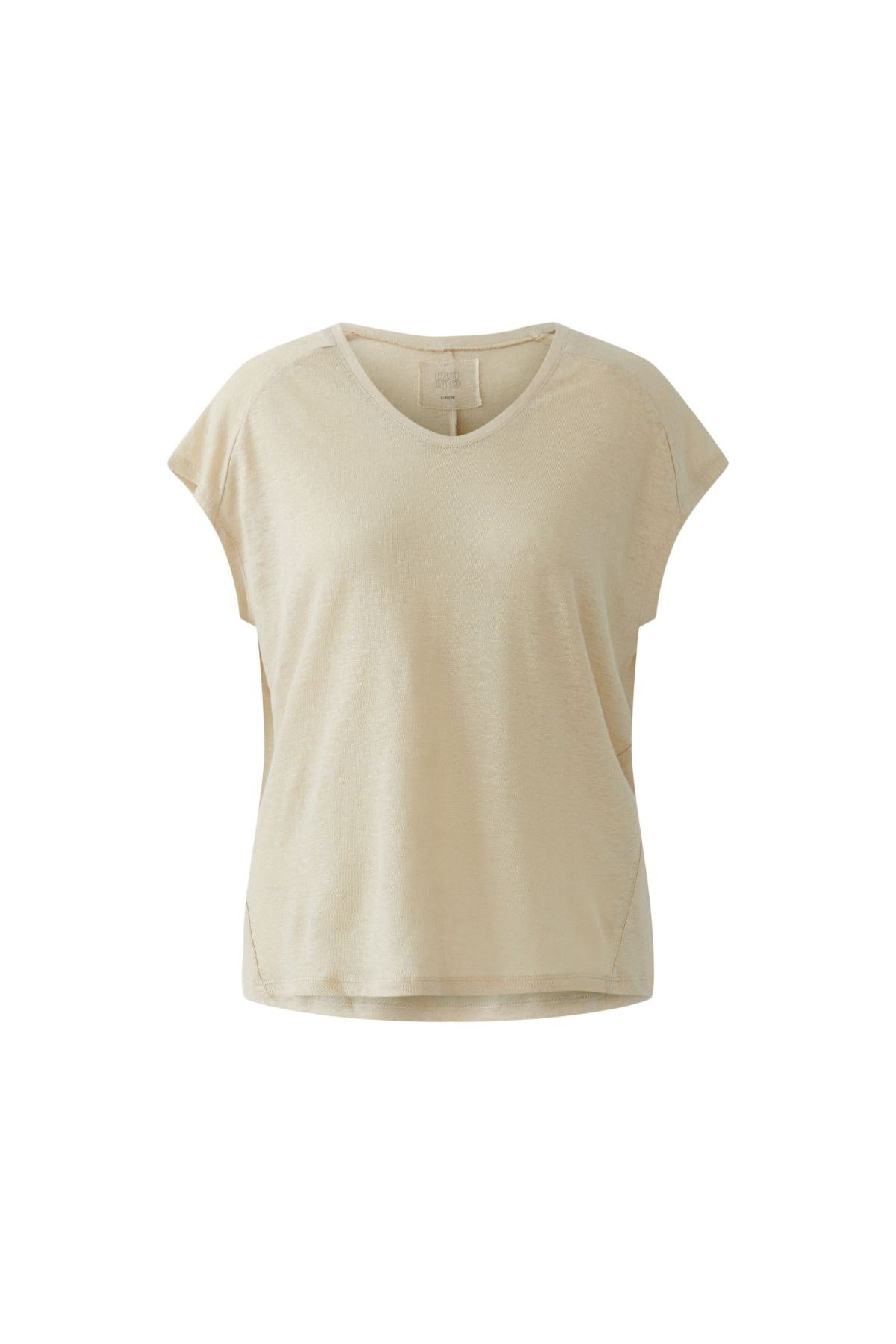 Relaxed and effortlessly cool, this cap-sleeve tee features a soft slub texture and a flattering V-neckline. Its slightly curved hem adds a touch of shape to the easy silhouette. A go-to piece for casual comfort with a refined finish.